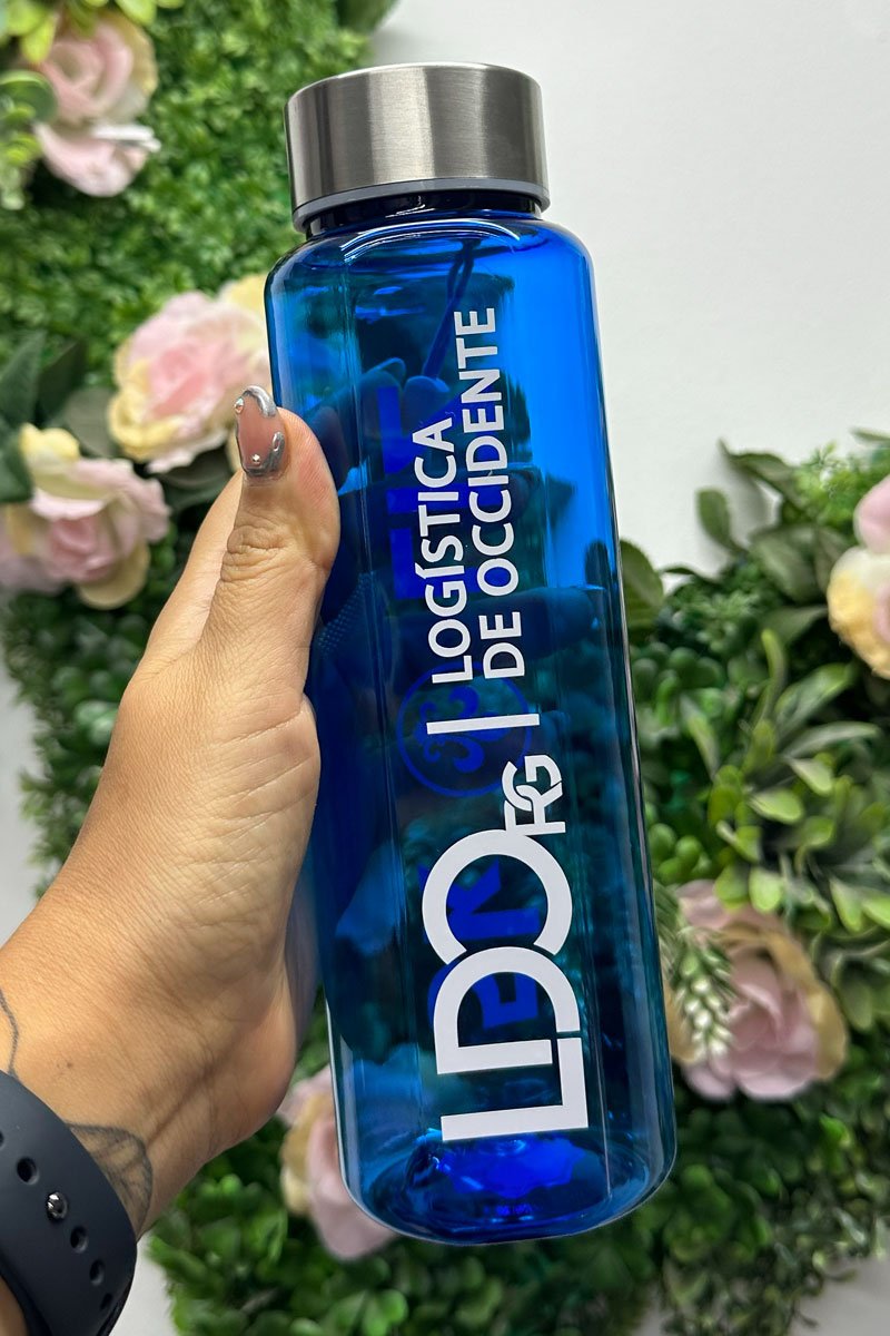 Cilindro plástico Moin Moin tapa rosca metálica personalizado serigrafía color azul 500 ml