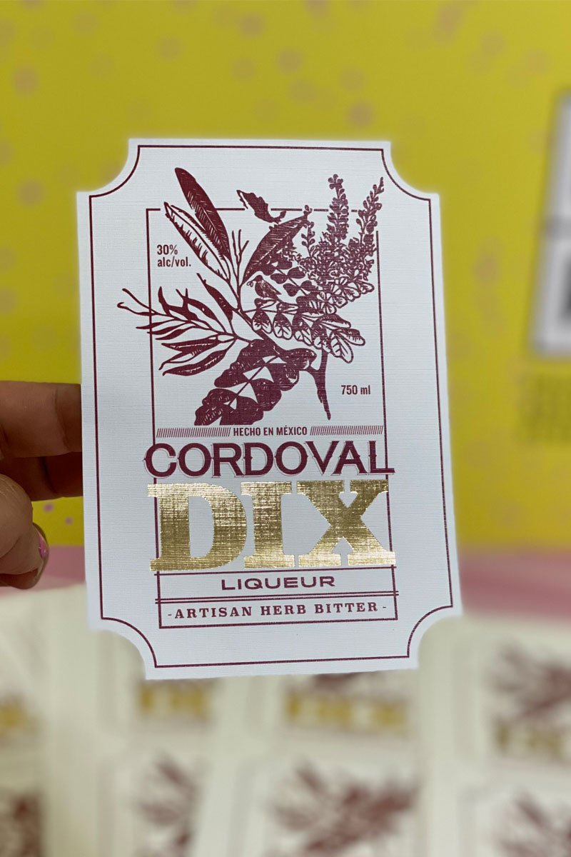 Etiqueta de producto 10x15cm couche autoadherible barniz a registro dos tintas personalizable en laminado, barniz, barniz a registro, hot stamping y suaje.
