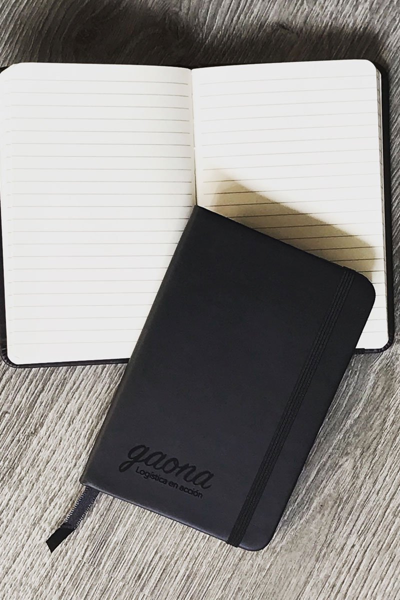 Libreta pocket en pasta dura forros en vinipiel interiores en papel bond 90 gramos, personalización en serigrafía o láser 200 páginas tamaño 1/4 carta