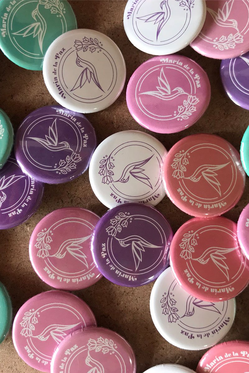 Pin tipo botón de 5cm personalizable en couche de línea o plástico con broche de aguja y seguro metálico