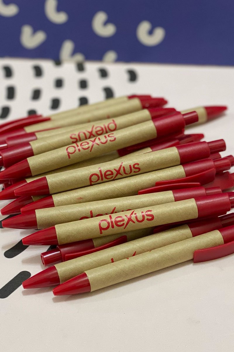 Pluma ecofriendly tinta azul mecanismo pulsador personalizable