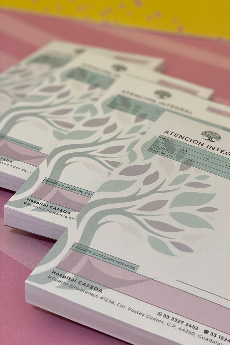Recetario medico impreso personalizado a 4 tintas 14×22 cm 200 hojas personalizado en foliado, pre suajado y plecado